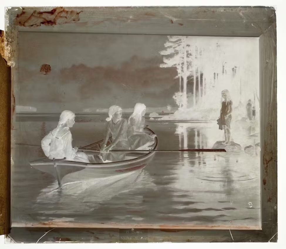 Albert Edelfelt, Summer evening, 1883, oil on canvas, owner unknown. Glass negative (and positive), dry plate, 385 x 335 mm, Daniel Nyblin ca. 1883.